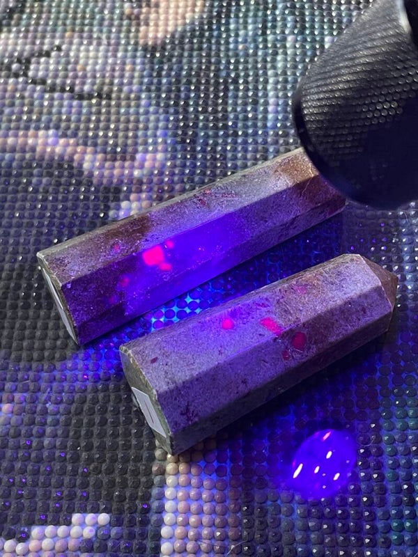 These beautifully cut points boast huge Ruby inclusions with glow under blacklight.